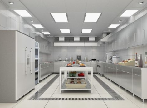 飯店廚房裝修的燈光重文化,廚房的燈光重實用。這里的實用,主要指臨爐炒菜要有足夠的燈光以把握菜肴色澤;案板切配要有明亮的燈光,以有效防止刀傷和追求精細的刀工;出菜打荷的上方要有充足的燈光,切實減少雜草混入并流入餐廳等等。廚房燈光不一定要像餐廳一樣豪華典雅、布局整齊,但其作用絕不可忽視。